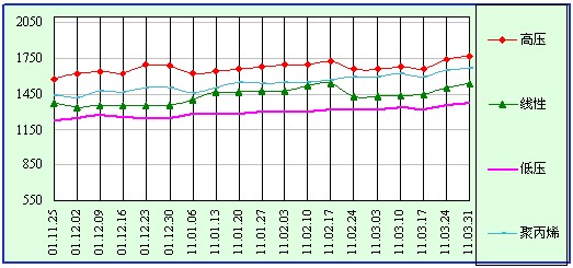 A、聚乙烯市场(PE):本周亚洲聚乙烯市场报价因油价、乙烯单体价格高位运行及资源供应吃紧而走高10-40美元,但交易因需求迟缓而恬静。本周亚洲地区聚乙烯报价如下: 高压1770;低压膜料1540中空1360;线性1410美元/吨(CFR 中国主港/东南亚)。