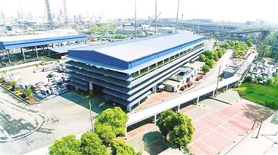 从金资公司厂区内的龙角亭向前方眺望,一排约5层楼高的浅绿色钢结构厂房拔地而起,这个原料厂房是武钢有限钢渣处理中心钢渣二次加工的起点,它的后面是提纯厂房和空压站,彼此之间以“栈桥”相连。