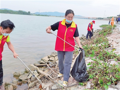 河源高新区党群驿站组织志愿者 清理东江河道沿岸垃圾